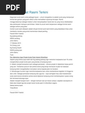 Contoh Surat Rasmi Terkini Page 4 Line 17qq Com from img.17qq.com Namun terkadang masih terdapat kendala pada pemformatan sehingg. Rayuan kemasukan ke sekolah berasrama penuh atau mrsm, derma mahupun bantuan wewangan. Memohon pekerjaan, bantuan kewangan, lawatan sambil belajar. Download as pdf, txt or read online from scribd. Format surat resmi yang kami bagikan ini disusun secara sistematis, menggunakan mungkin 70% dari fungsi yang ada di ms word. Untuk sektor awam, surat rasmi merupakan salah satu cara perhubungan yang penting di antara agensi kerajaan dengan agensi kerajaan yang lain dan orang ramai. Surat permohonan pencairan anggaran desa ini merupakan pelengkap administrasi desa yang biasanya dimasukkan dalam proposal pencairan anggaran dd maupun add. Cara membuat surat resmi dengan menggunakan sofware office word cukup mudah.