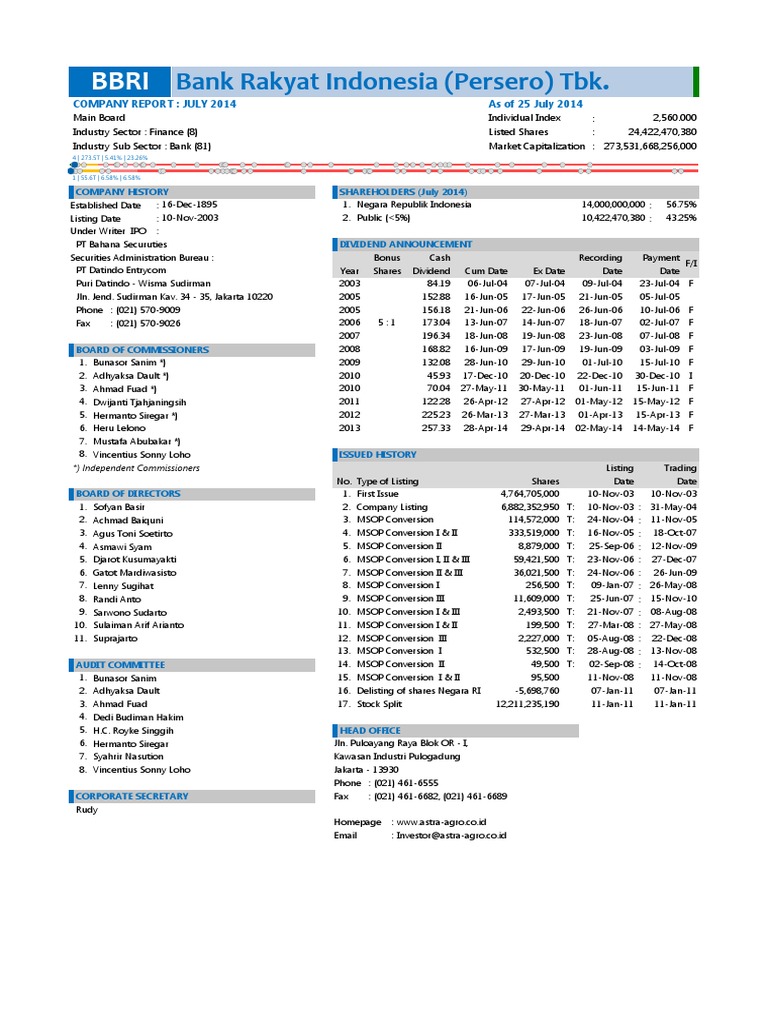 Bank bri (bank rakyat indonesia) merupakan salah satu bank milik pemerintah yang terbesar di indonesia. (2192) bank pilihan anda #yourbankofchoice fb: Bank rakyat mengumumkan pembayaran dividen 13% kepada anggota bagi tahun kewangan berakhir 31 disember 2018 sebentar tadi. Dapatkan informasi terperinci mengenai saham bank rakyat indonesia agroniaga (agro) termasuk harga, grafik, analisis teknikal, data historis, laporan bank rakyat dan lain sebagainya. Bank rakyat indonesia agroniaga tbk.